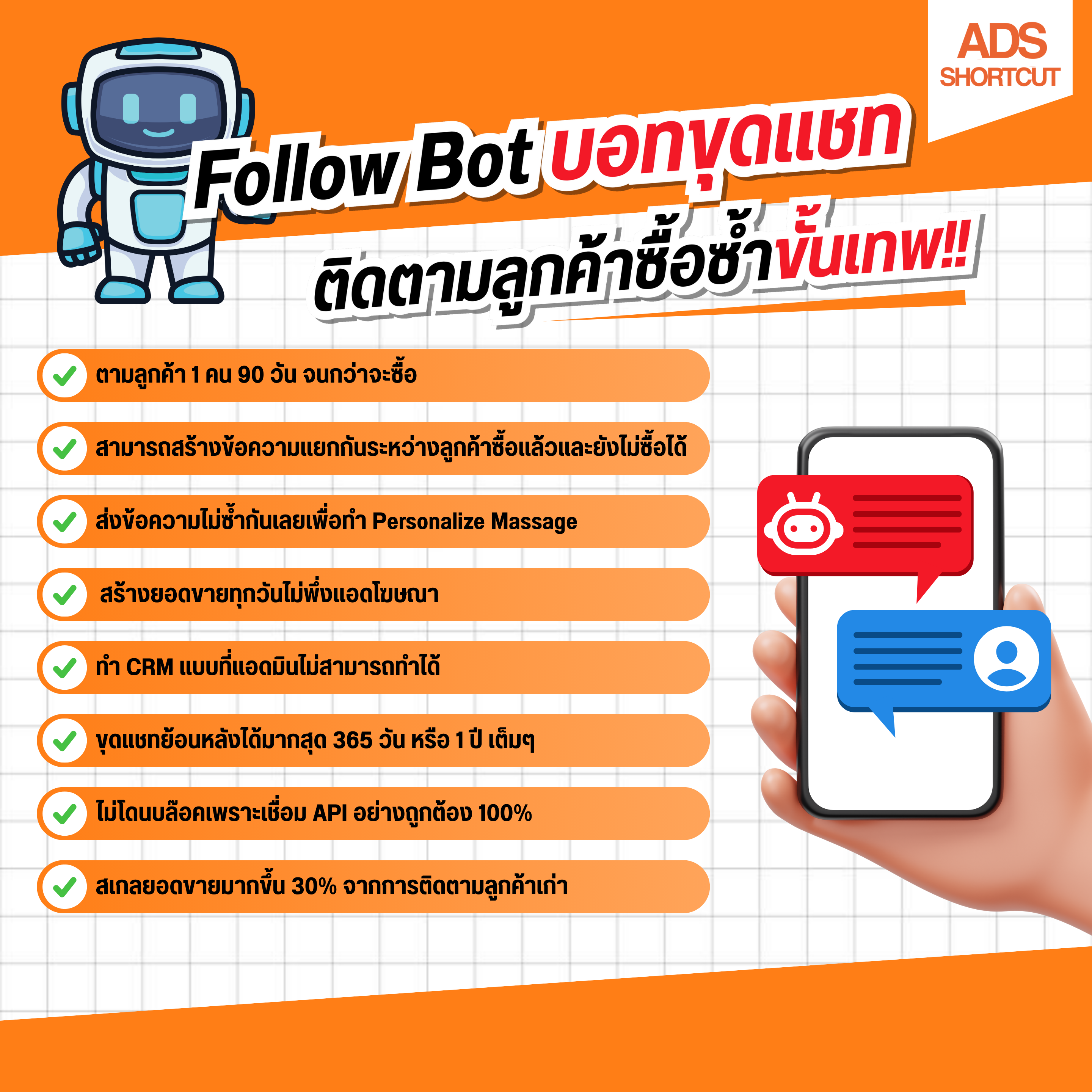 บอทขุดติดตามลูกค้าเก่าให้กลับมาซื้อซ้ำตลอด เราจะติดตาม 2 แบบ คือ