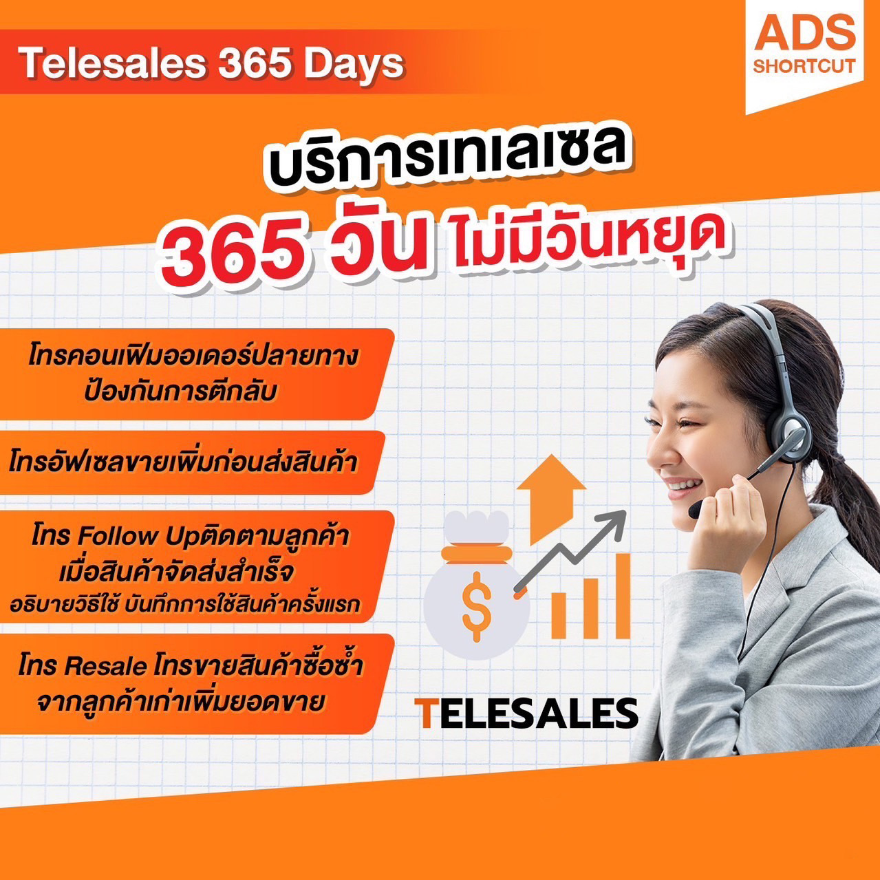 บริการเทเลเซล (Telesale) ของเราทำงาน 365 วันไม่มีวันหยุด ทีมงานมืออาชีพจะช่วยคุณโทรปิดการขาย ติดตามสินค้า โทรให้ข้อมูลรายละเอียดสินค้า โทรถามความพึงพอใจของสินค้าและบริการของแบรนด์ โดย Flow การทำงานจะเริ่มต้นเมื่อแอดมินปิดการขายในช่องแชท ทีมเทเลเซลจะโทรยืนยันออเดอร์และ Upsell ให้ออเดอร์ใหญ่ขึ้นก่อนส่งสินค้าไปให้ลูกค้า วิธีนี้จะช่วยให้ยอดขายเติบโตอย่างมั่นคง หลังจากนั้น ทีมเทเลเซลจะโทรติดตามหลังจากสินค้าจัดส่ง เพื่อทำ CRM ขั้นตอนแรก เราจะให้ข้อมูลสินค้า สอนการใช้ และแนะนำข้อดีต่างๆ พร้อมบันทึกวันที่เริ่มใช้สินค้าและติดตามเมื่อสินค้าหมด จากนั้น ทีมเทเลเซลจะโทรขายสินค้าช่วง Resale เพื่อให้คุณขายสินค้าแบบซื้อซ้ำ โดยไม่ต้องเสียค่าโฆษณาเลย